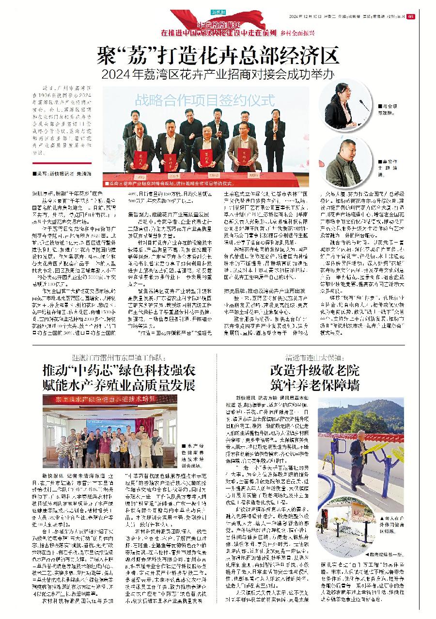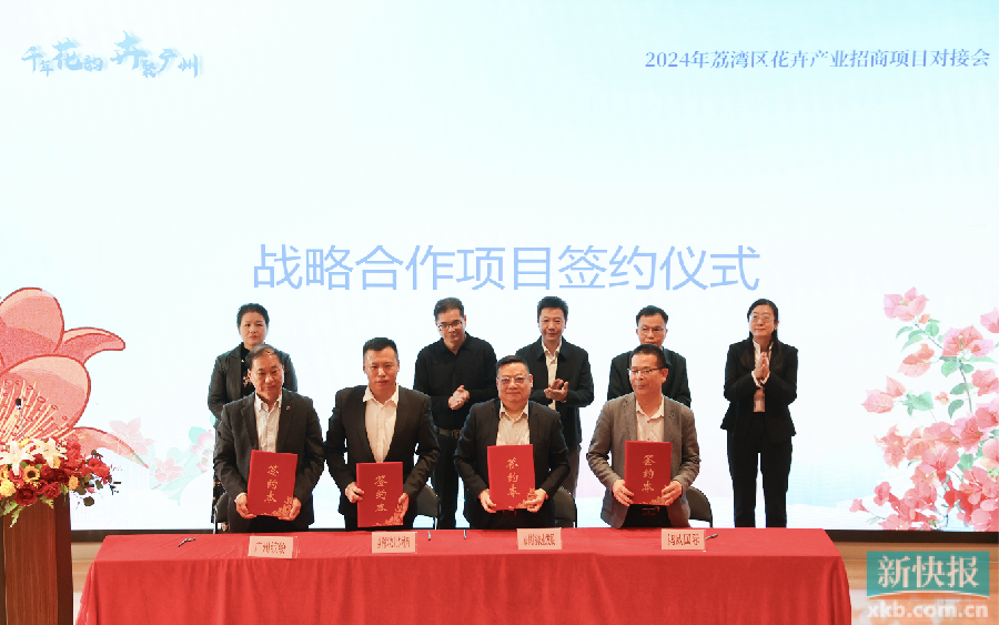 新快報訊  花地接花津,四時皆似春。12月6日,荔灣區在1906科技園舉辦2024年荔灣區花卉產業招商對接會。會上,荔灣區招商和農業部門與相關花卉協會及頭部企業簽訂11份戰略合作協議,荔灣與花都兩區農業部門簽訂花卉產業高質量發展合作協議。