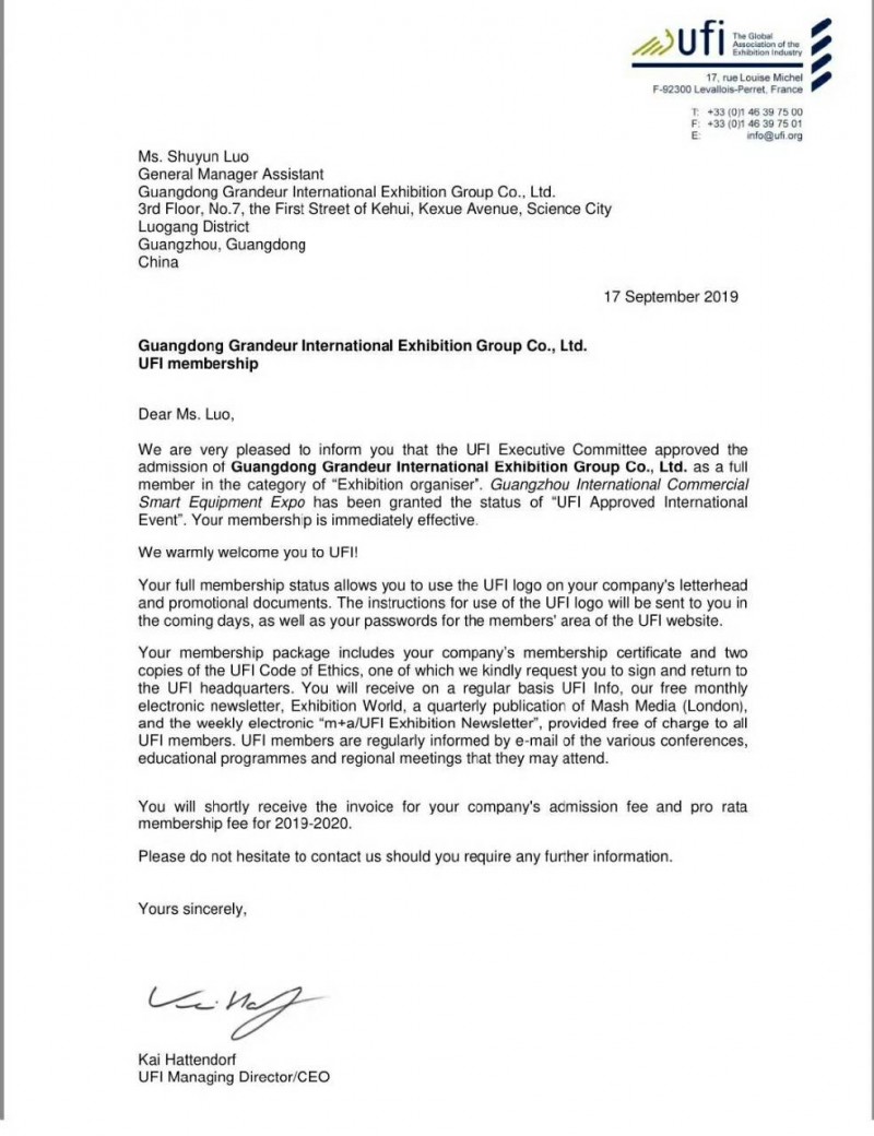 “UFI經常在不同國家舉辦各種針對性的培訓和交流活動。通過UFI認證以后,我們可以參加UFI舉辦的各項活動,增加學習機會,加強國際交流,提高廣州商博會的辦展水平。”張彥中總監表示,展會的國際化程度與影響力將大大提升,專業化和規范化程度上要求將會更高,對我們展會的策劃運作要求也將更高。