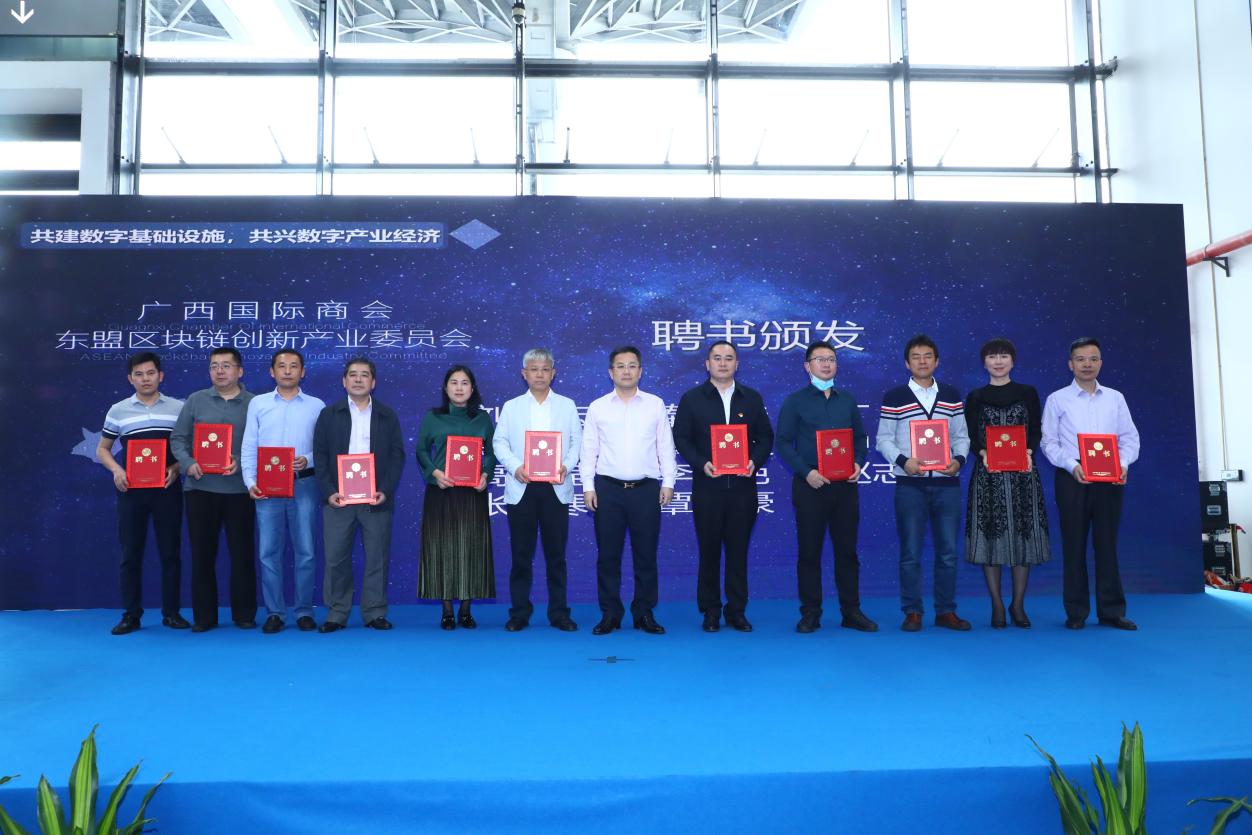 (圖6廣西國際商會東盟區(qū)塊鏈產(chǎn)業(yè)委員會為與會專家組成員頒發(fā)專家聘任聘書1)