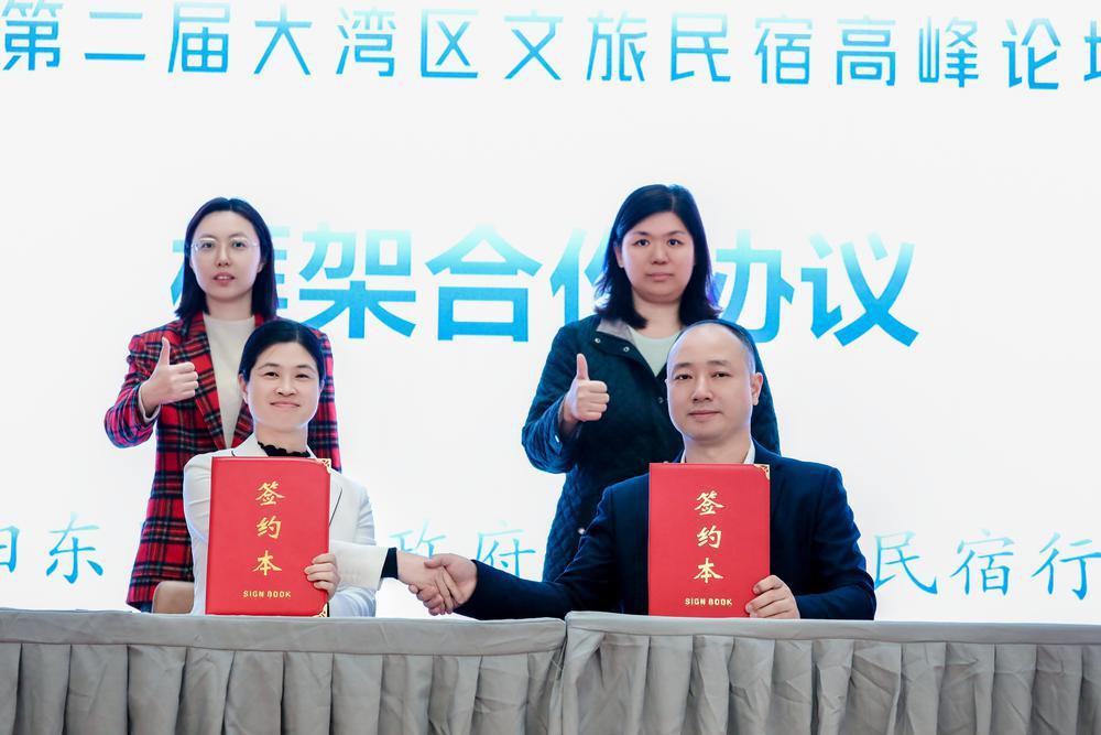 陽東區(qū)文旅局局長梁團作陽東區(qū)文化旅游民宿項目推介。隨后,陽東區(qū)副區(qū)長鄒春穎和廣東省民宿行業(yè)協(xié)會會長楊虎分別代表陽東區(qū)人民政府和廣東省民宿行業(yè)協(xié)會簽署框架合作協(xié)議。
